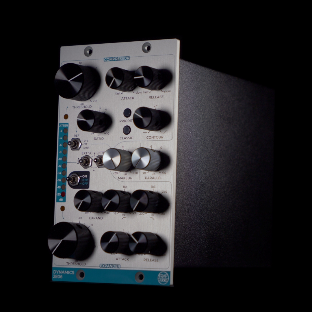 The Dynamics 2806 is the first device from Frap Audio, a new division of Eurorack module manufacturer Frap Tools. Housing both a mono compressor and expander in a double-width 500-series module, the Dynamics 2806 promises to offer precise control over a signal’s dynamic range in a single, straightforward unit.