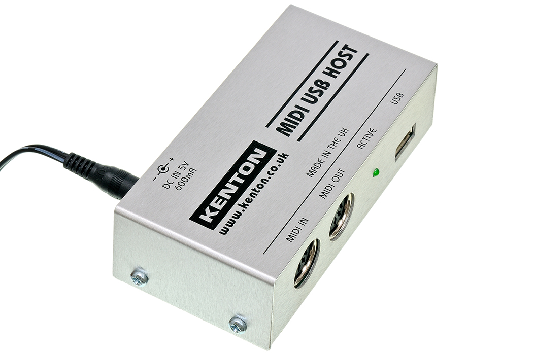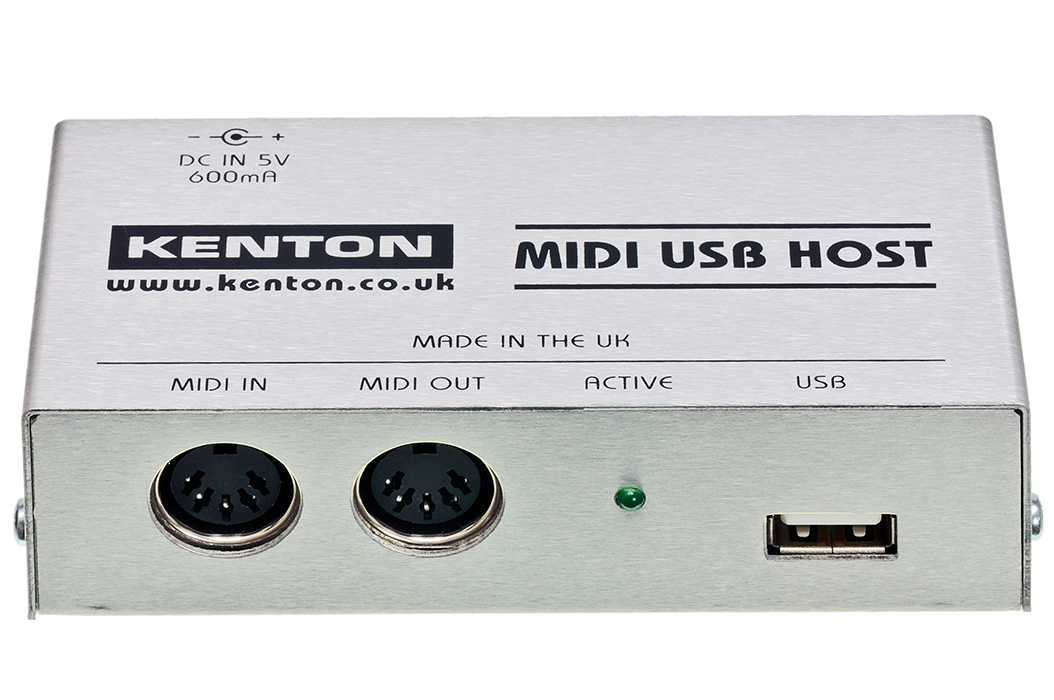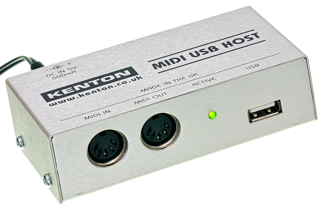 The device has a USB connector, a MIDI input and a MIDI output. Data received at the MIDI-In socket will be sent to te USB device, data from the USB device will be sent to the MIDI output. The USB device which is connected must be "class compliant". The USB MIDI Host is powered by a regulated, external 5V power supply and can provide up to 500mA via the USB buss power.