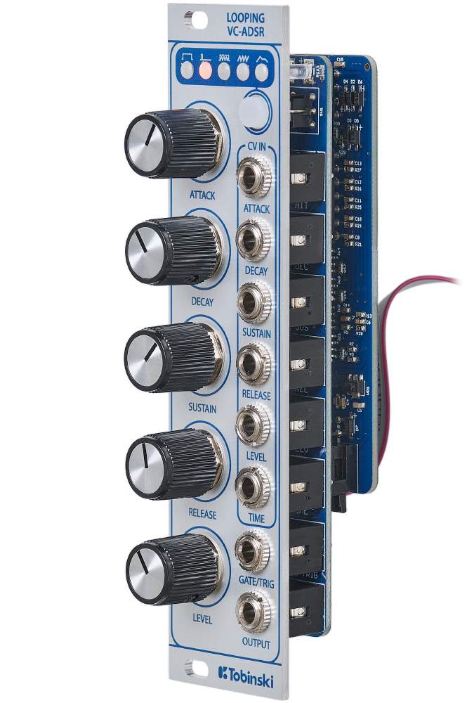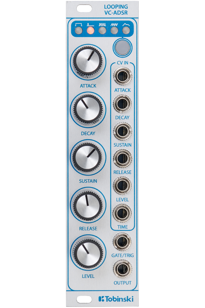 The Looping VC-ADSR is a 4-stage, loop-able, envelope generator based on the ENVGEN 8C IC from Electric Druid. The individual sections of the Envelope (Attack, Decay, Sustain, Release, Level and Time) can all be individually controlled via CV.