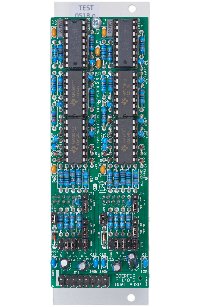 Module A-140-2 contains two ADSR type envelope generators behind a front panel with 8 HP only.