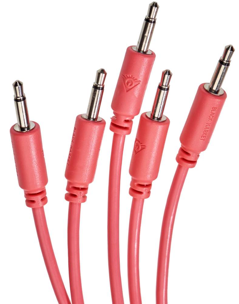 Black Market Modular's patch cords are characterized not only by beautiful colors but also their only 8mm wide and 25mm high plug. Thereby they are adequate for dense patches and they also fit really well into Stackcables. The cable is flexible yet not wishy-washy but also not too stiff - just perfect! They ship coiled and not twisted so you don't get that permanent kink.