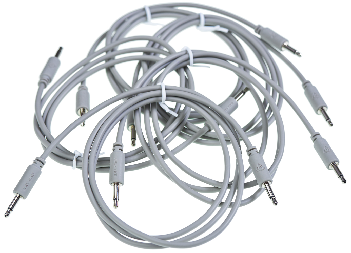 Black Market Modular's patch cords are characterized not only by beautiful colors but also their only 8mm wide and 25mm high plug. Thereby they are adequate for dense patches and they also fit really well into Stackcables. The cable is flexible yet not wishy-washy but also not too stiff - just perfect! They ship coiled and not twisted so you don't get that permanent kink.
