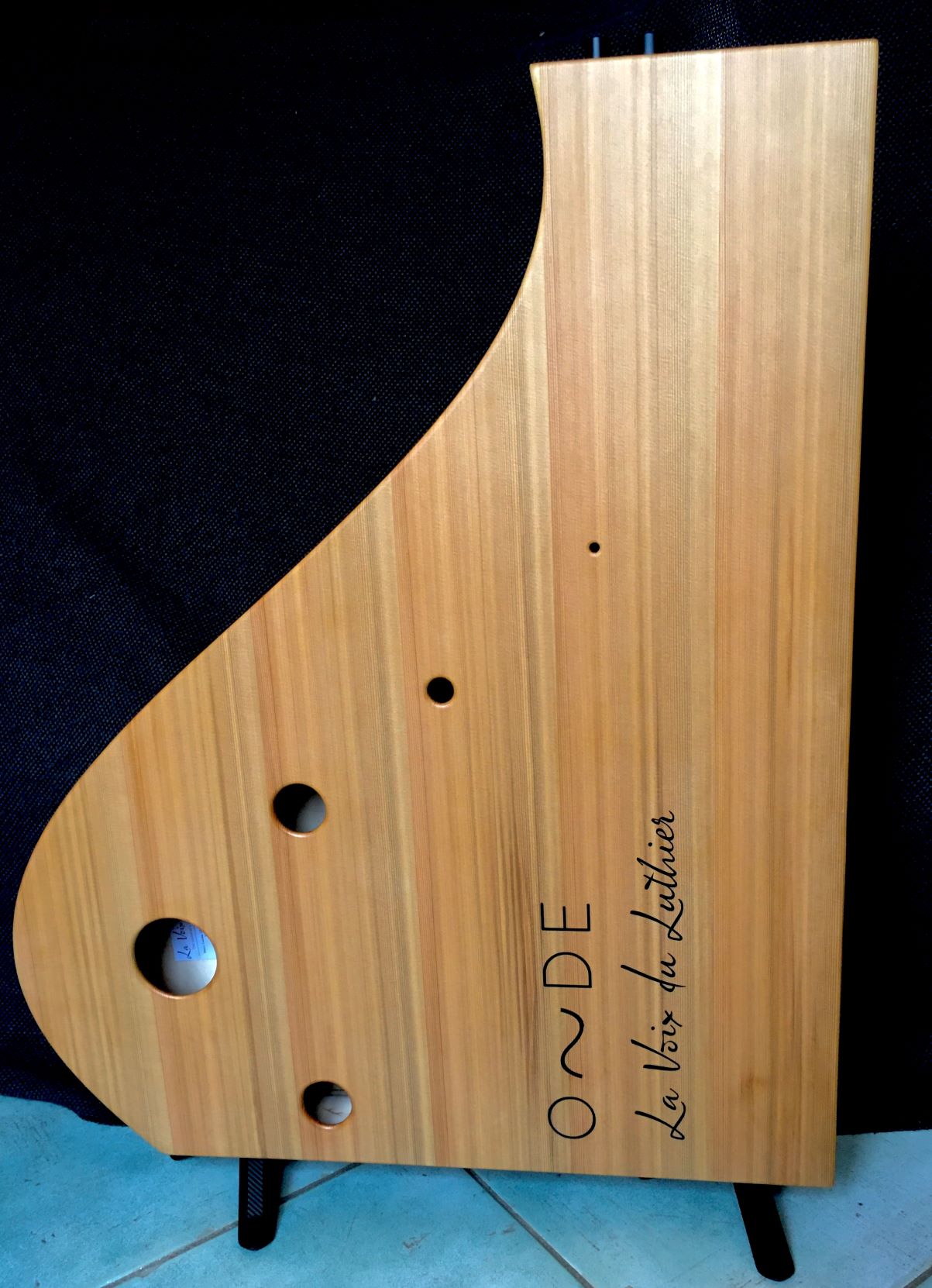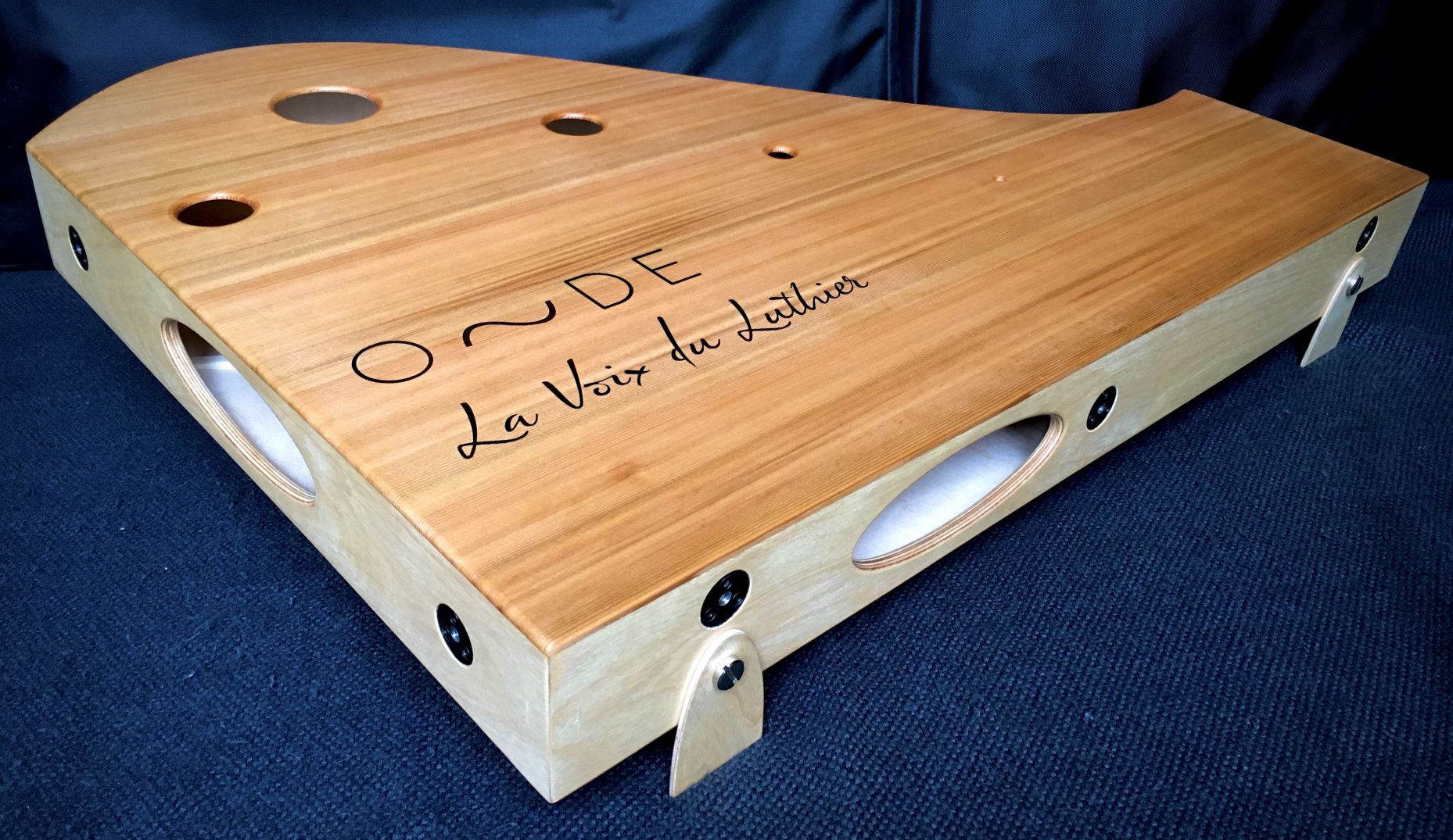 With the Onde the sound directly comes from the vibrations of the 2 soundboards. There is no speaker cone inside, only acoustic exciters transmitting the vibration into the wood. It is the same principle as for a guitar: the strings themselves make very little sound, but they are transmitting their vibrations to the soundboard through the bridge, and what you hear is the sonic amplification via the soundboard. In our case the exciter is acting as the bridge and transmits the electric "vibrations" to the wood.