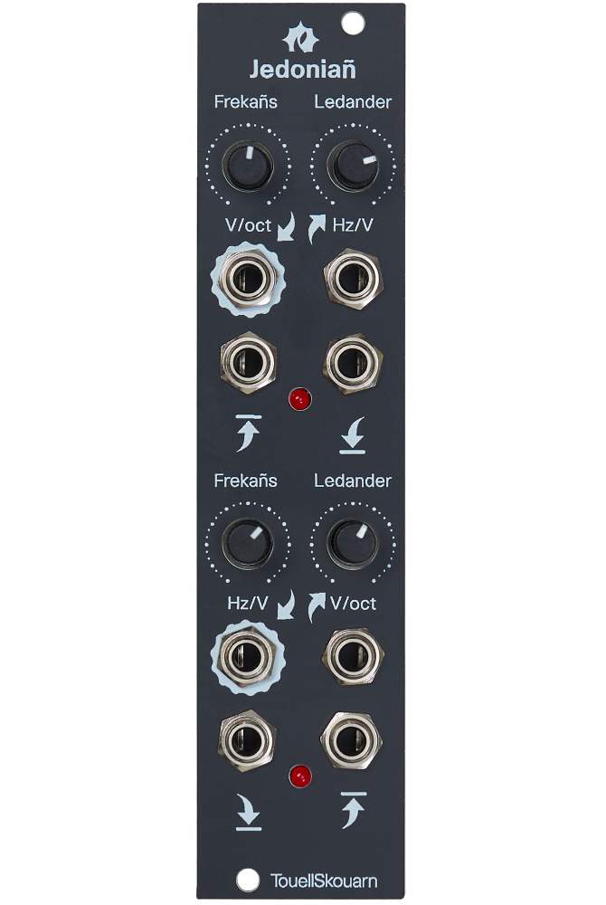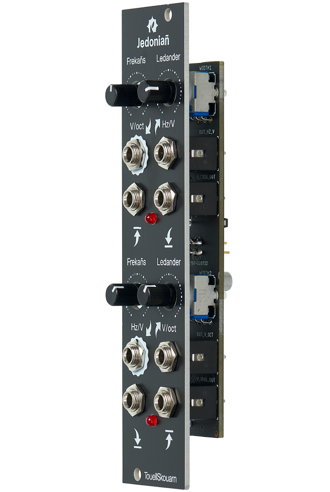 Possible applications of the Jedoniañ are using a Hz/V synth as a CV keyboard for your Eurorack or vice versa, conversion of voltages from a 1V/oct MIDI/CV interface to the Hz/V characteristic and so on.