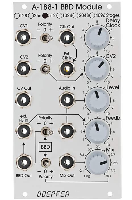 Die A-188-1-Serie basiert auf einem sog. Eimerkettenspeicher (BBD), der in den gleichnamigen pseudo-digitalen Delays eingesetzt wurde.
