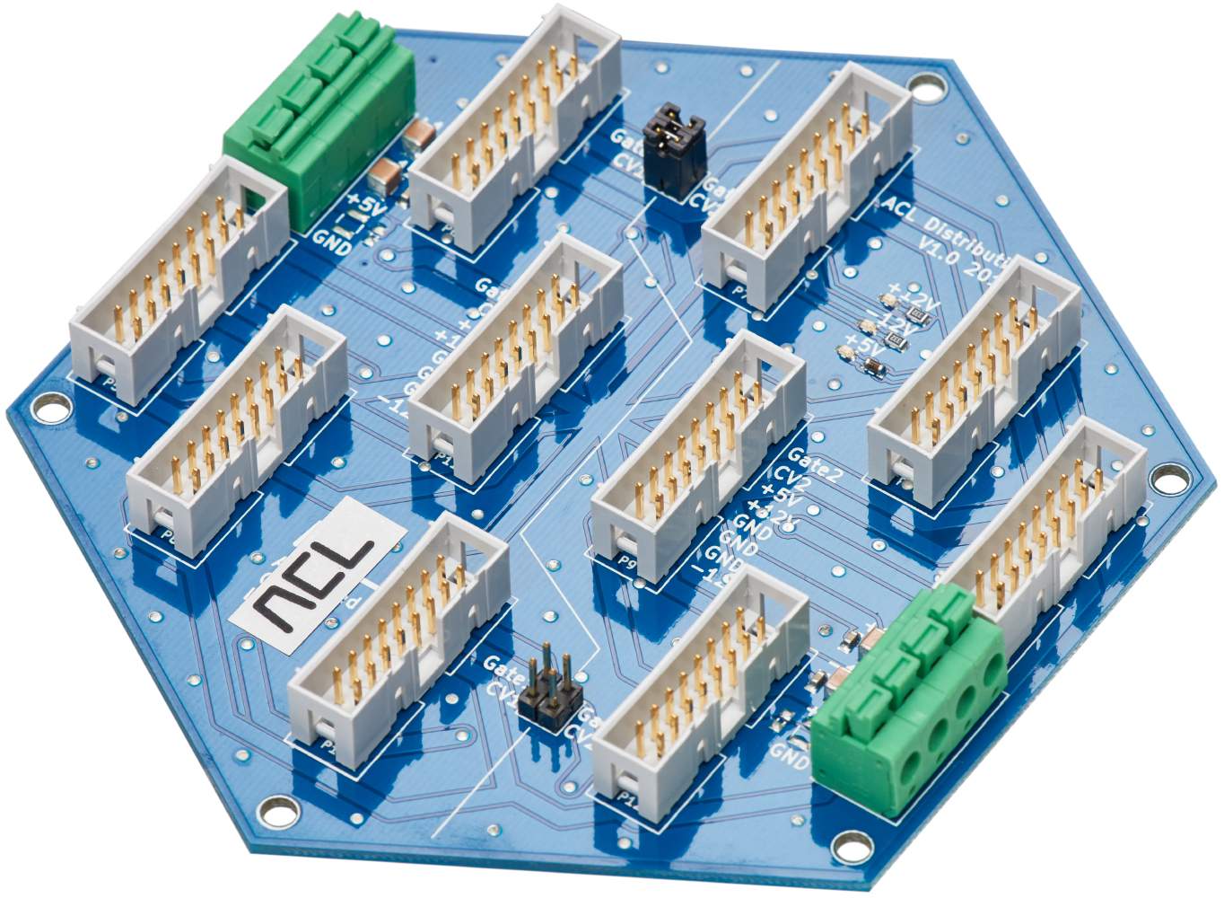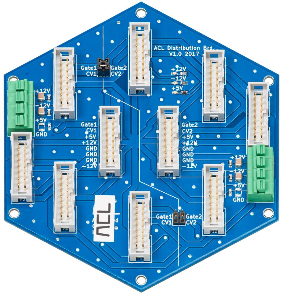 Das ACL Power Distribution Board verfügt über eine kompakte Leiterplatte mit niederohmigen Masse- und Stromleitungen, integrierter Entkopplung der +12V- und -12V-Schienen und einem "Stern"-Strom- und Masse-Design. Einfach ausgedrückt, unser Board lässt alle Module im System so gut wie möglich klingen.
