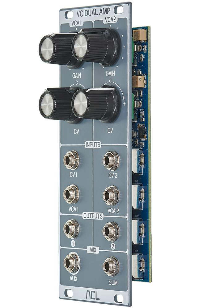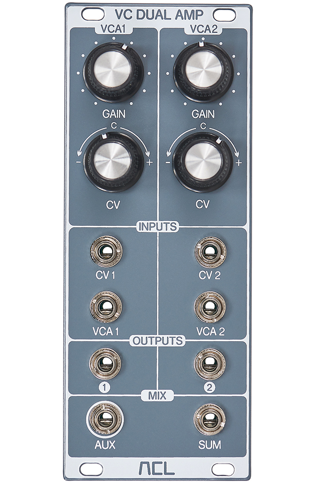 Jeder Kanal verfügt über einen Gain Potentiometer zur manuellen Einstellung der Initialverstärkung des VCA und einen Steuerspannungseingang, der mit einem Dämpfungsregler zur Skalierung der Modulation ausgestattet ist. Dank normierter Signal- und CV-Eingänge können beide VCAs in Verbindung verwendet werden. - Ideal für die Verarbeitung von Stereomaterial. Darüber hinaus können Sie im Handumdrehen spannungsgesteuerte Panning-Effekte und Crossfades erstellen. Neben den beiden einzelnen Audioausgängen von jedem VCA gibt es einen Summenausgang, der die Mischung aus dem Ausgang beider VCAs und dem vom Aux-Eingang kommenden Signal liefert. Dieser zusätzliche Eingang hat keinen Pegelsteller und wird mit Unit Gain gemischt. So können drei verschiedene Signale miteinander vermischt werden.
