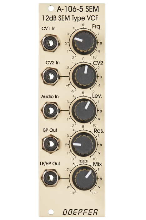 Das Modul A-106-5 ist ein 12dB-Multimode-Filter, in dem die Schaltung des SEM-Moduls zum Einsatz kommt.