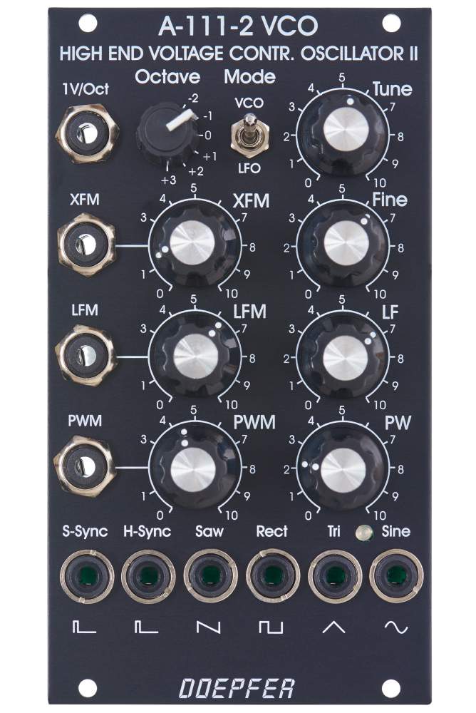 Der Nachfolger des A-111 High End-Oszillators ist ein äußerst präziser, analoger VCO/LFO mit einem enorm großen Frequenzbereich, einem makellosen Tracking über mindestens zehn Oktaven und fast perfekten Wellenformen. Er ist mit linearer wie exponentieller FM, Pulsbreitenmodulation, zwei Arten von Sync sowie Abschwächern an allen Modulationseingängen sehr gut ausgestattet.