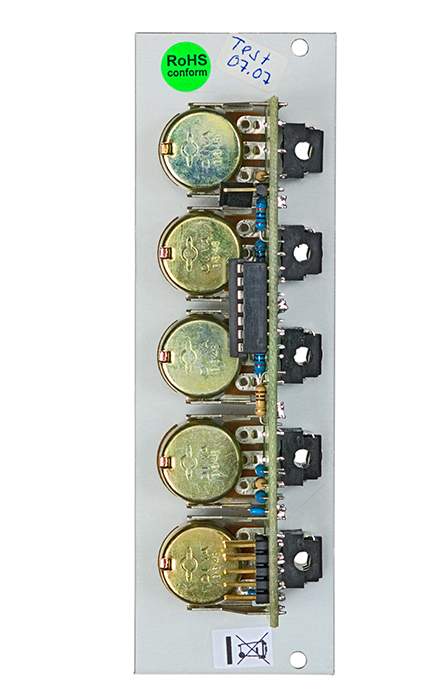 Für jeden der vier Eingänge steht ein eigener Abschwächer zur Verfügung. Darüberhinaus verfügt der Mixer über einen Abschwächer am Ausgang, so daß dieser auch das Ende der Audiokette darstellen kann. Das Modul wird in zwei Versionen geliefert - A-138 a: Ausführung mit linearen Potentiometern; in erster Linie für das Mischen von Steuerspannungen geeignet - A-138 b: Ausführung mit logarithmischen Potentiometern; besonders geeignet für das Mischen von Audio-Signalen.