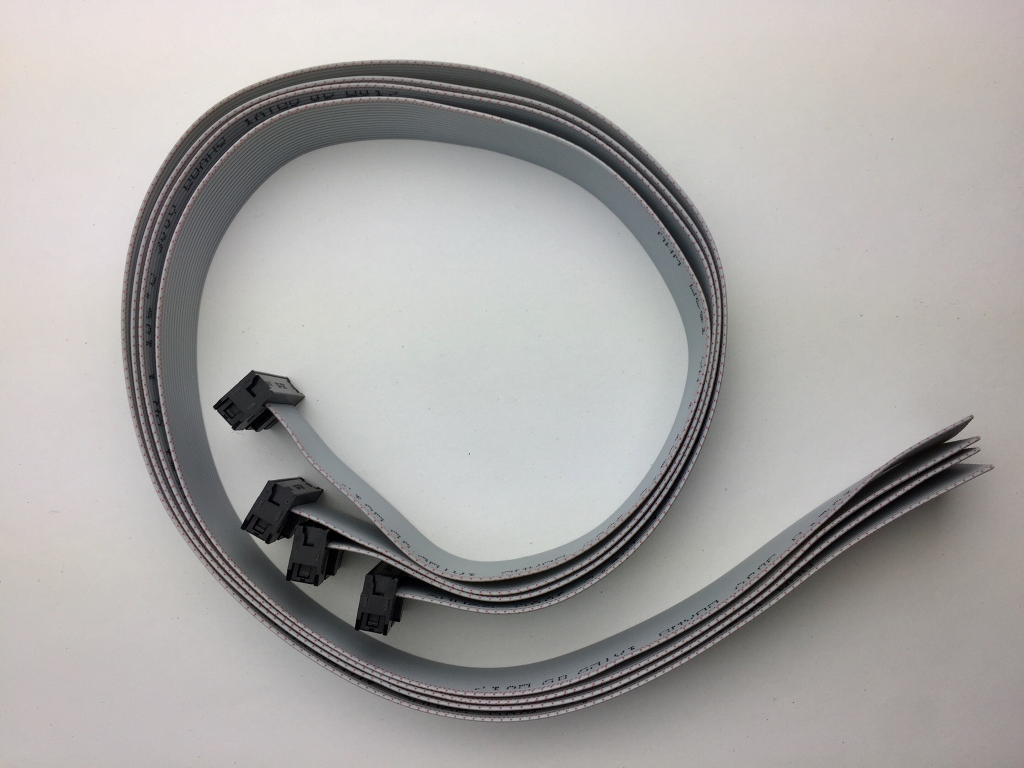 Kabelsatz zum MTC64 Der Kabelsatz besteht aus vier 16-poligen Flachbandkabeln zu je 50cm mit aufgepresstem 16-poligem Pfostenverbinder an einem Ende, sowie einem 10-poligen Flachbandkabel mit 50 cm Länge mit einem aufgepressten 10-poligem Pfostenverbinder an einem Ende.