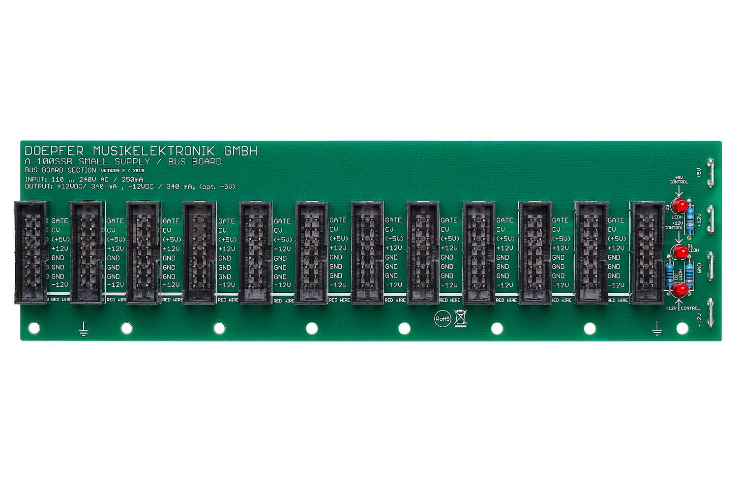 A-100SSB (Version 1.2) ist eine Kombination aus Netzteil und Busplatine mit 12 Steckplätzen für A-100-Module.