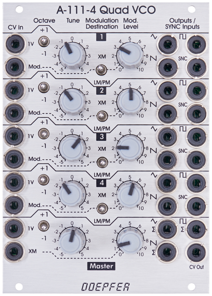After all the A-111-4 is very similar to four A-111-3 without LFO mode but built in output mixers for the three waveforms, and a master unit for all four VCOs.