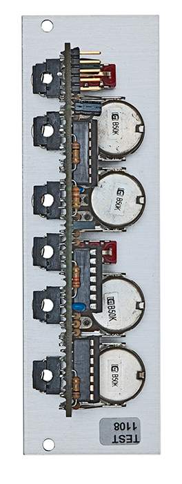 Each VCA has a manual gain control and a control voltage input with attenuator. The character of the control scale can be switched to linear or exponential. All inputs and outputs are DC coupled. Consequently the VCAs can be used to process both audio and control voltages.