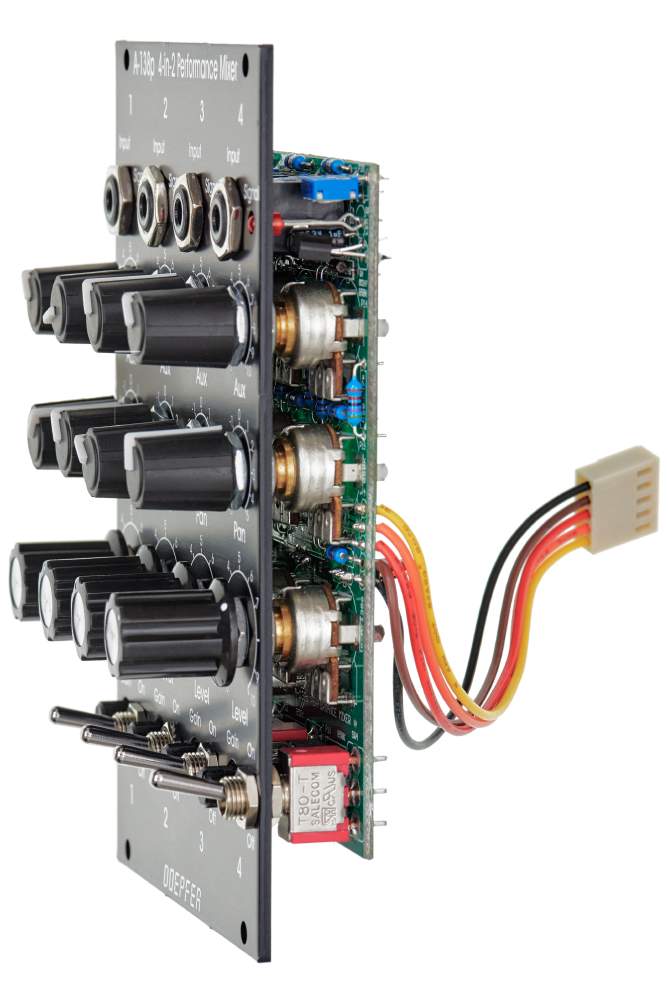 A number of input modules can be cascaded to form a mixer with more inputs, growing with your needs. Modules A-138p and A-138o are used to built a simple performance mixer (instead of an external stand-alone mixer).