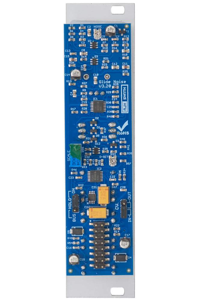 The new Mk2 MiniMod Glide Noise module now has an impressive 14 octave range, and can respond to negative voltages down to -5V. The hold feature has been improved too, it covers the full audio range as well as DC control voltages, and works as a track and hold module with Eurorack signal levels.