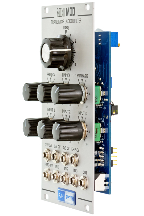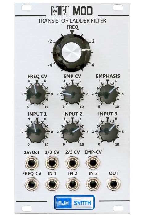 AJH Synth added voltage control of resonance and a selectable overdrive. -24dB/octave steep low pass filter with Moog's famous patented transistor cascade; like on early Minimoogs the transistors are entirely hand-selected for the sake of a better sound.