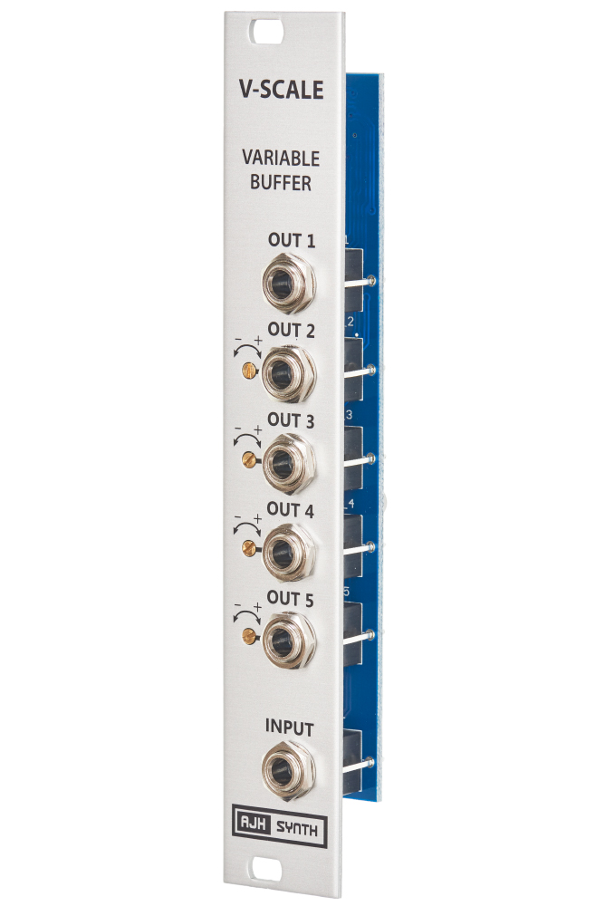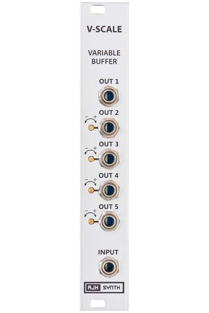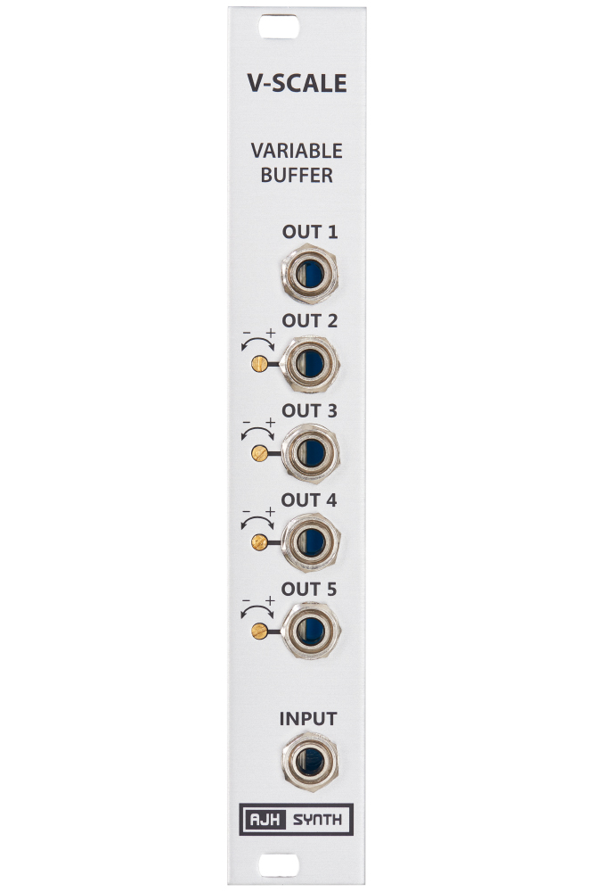 In addition to being a very accurate precision buffered multi, AJH have added a very useful (and unique) feature to cure tracking problems - four of the five outputs can be adjusted up or down by +/-5% from the front panel, so that VCO’s and VCF’s that don’t track 1V/Oct exactly can be easily compensated to track correctly without having to re-calibrate the VCO or VCF themselves.