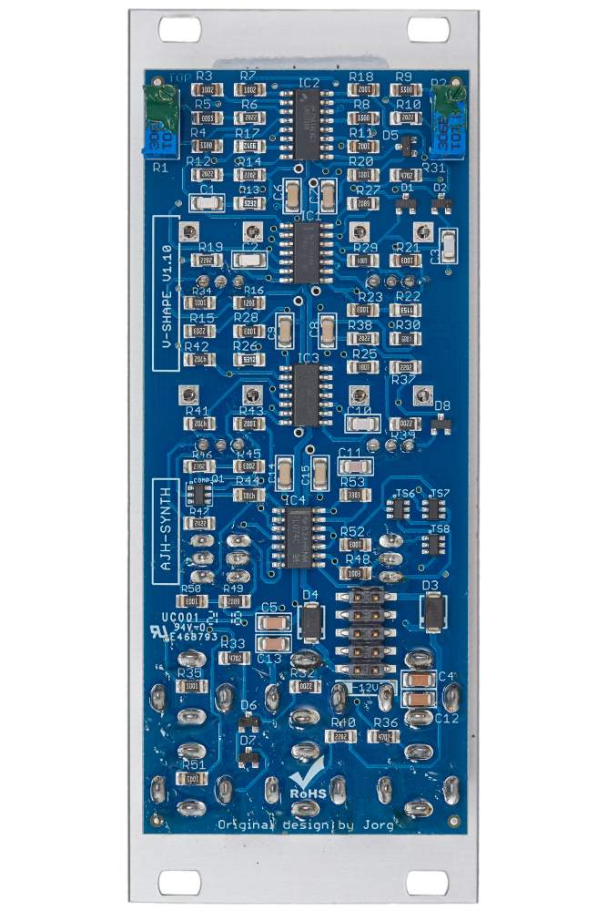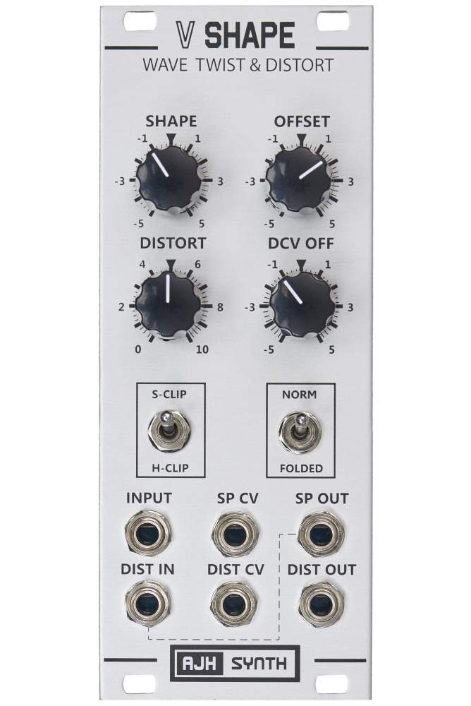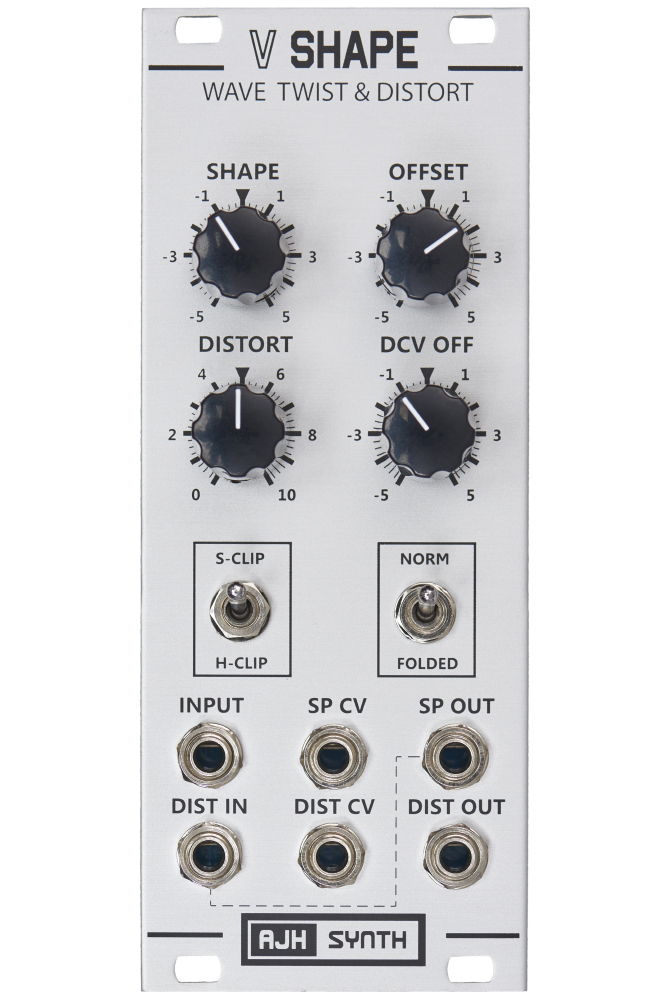 The V-Shape is two modules in one, a wave twister and a distortion / wavefolding module. Both sections of the modules are all analogue in design, and both can be used independently or they can be normalled in series.