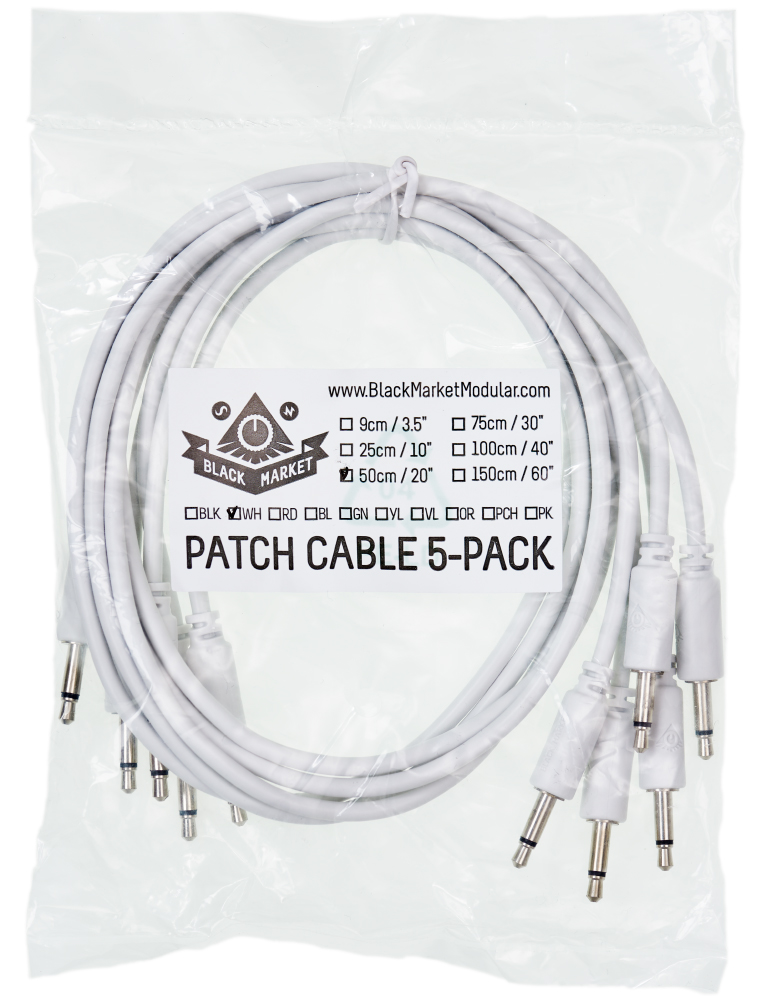 Black Market Modular's patch cords are characterized not only by beautiful colors but also their only 8mm wide and 25mm high plug. Thereby they are adequate for dense patches and they also fit really well into Stackcables. The cable is flexible yet not wishy-washy but also not too stiff - just perfect! They ship coiled and not twisted so you don't get that permanent kink.