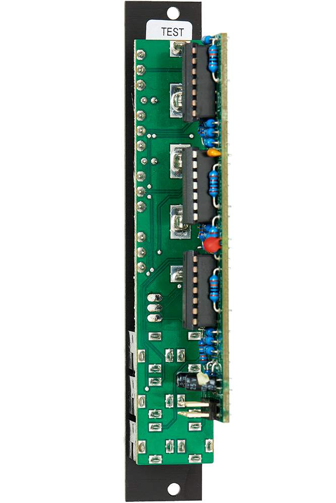 A-130-2 is the slim version of module A-132-3 and offers essentially the same features. But the distances between the controls are smaller and rubberized small-sized knobs are used. In return the front panel has 4 HP only which is half the width of the A-132-3. The module is primarily planned for applications where only limited space is available.