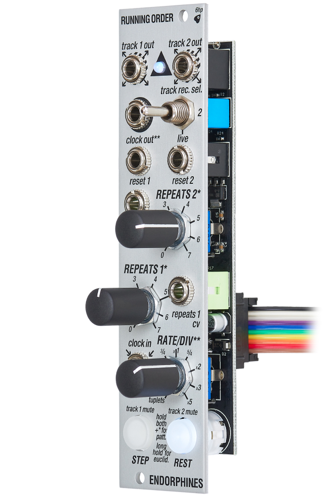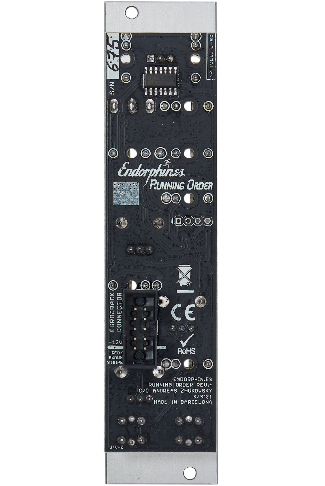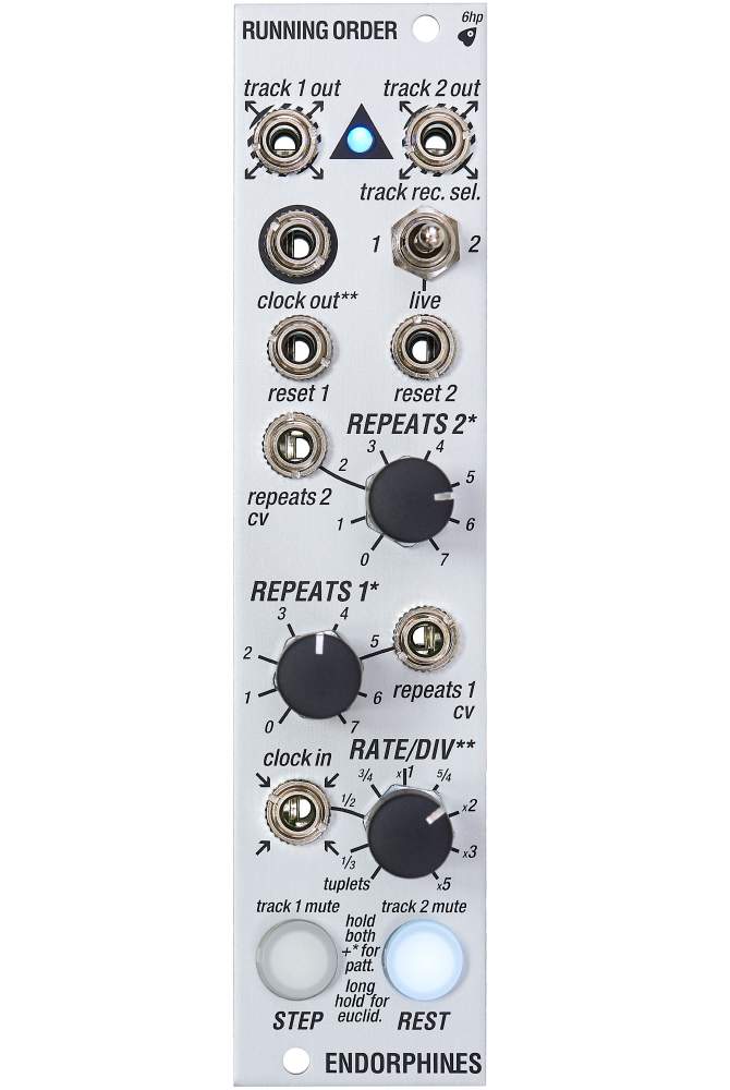Running Order is a super compact two track trigger generator: it can be a precise master clock or manipulate an incoming clock and thus works great as a sub-sequencer/divider in your eurorack environment.