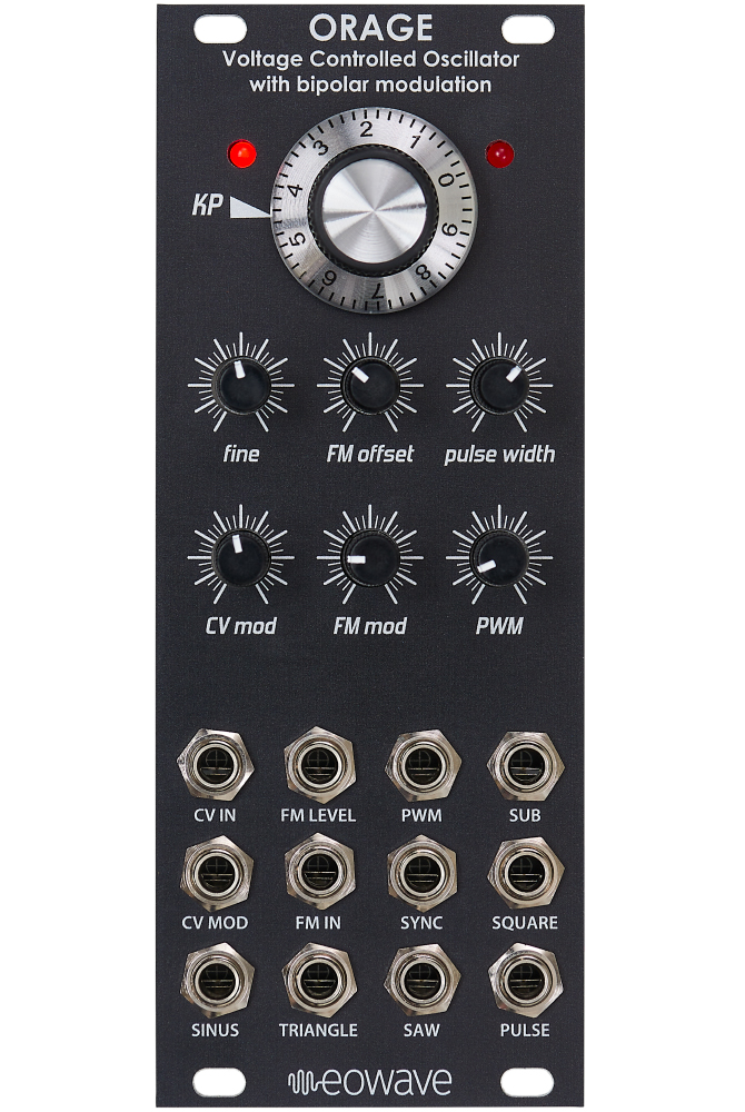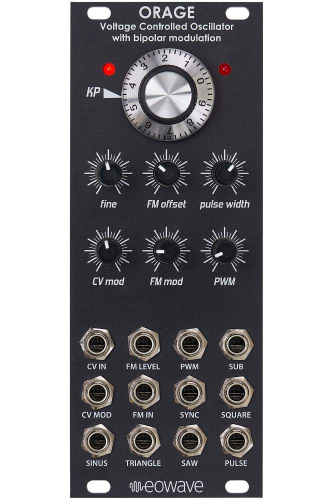 The Orage is a triangle core based voltage controlled oscillator which enables different modulation types from thru zero FM synthesis, linear as well as exponential modulations, pulsewidth modulation to phase inversion modulation.