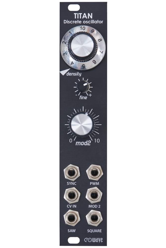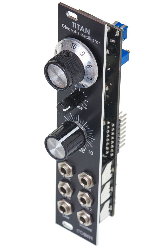The Titan Oscillator is a compact (5HP) discrete VCO with a frequency range of about 1Hz to 6kHz.