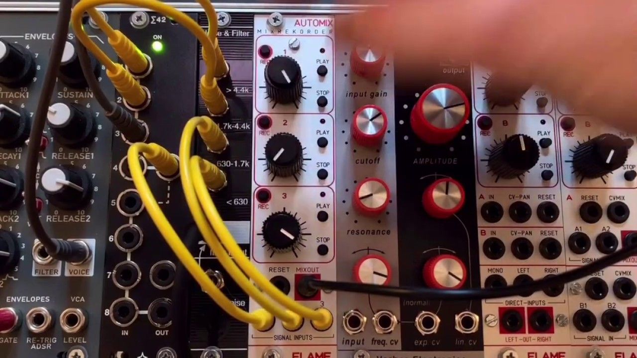 The "AUTOMIX" module is a compact three-channel mixer for audio or CV sources in the voltage range +-5v (audio modular level).