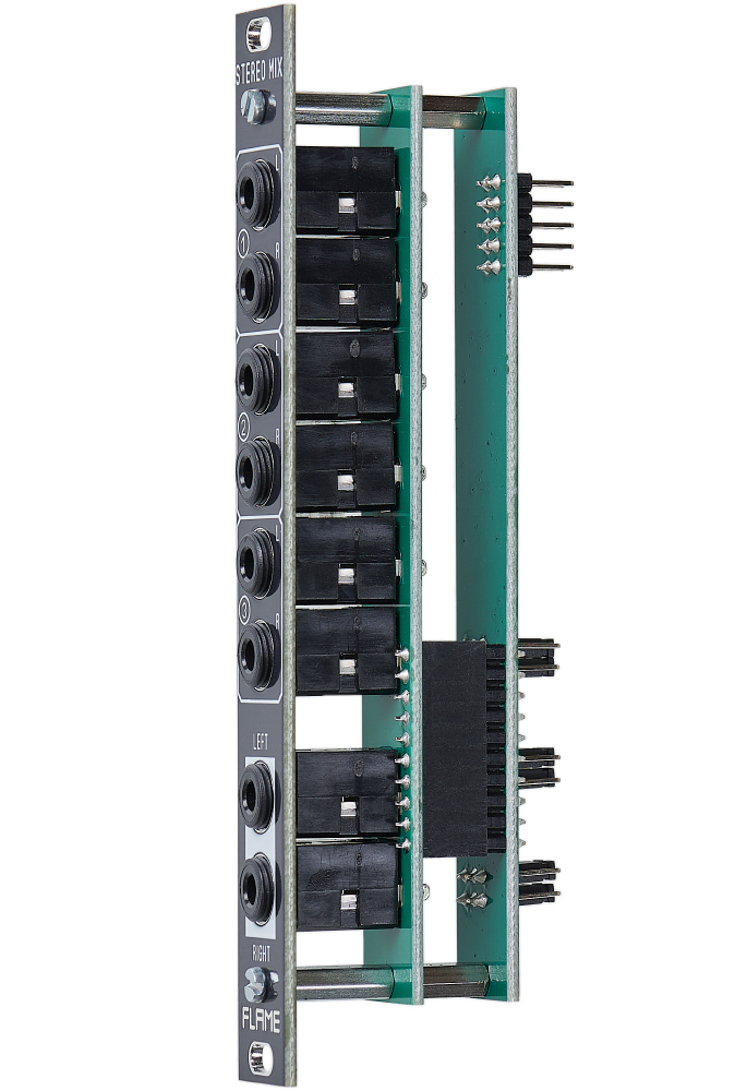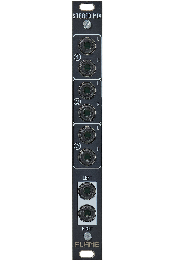 This ultra-compact 3HP mixer module is designed for easy integration of multiple stereo line-level sources. To prevent clipping, connected sources should be externally leveled. Perfect for submixers, be a 3 effect returns or 3 external synth modules.