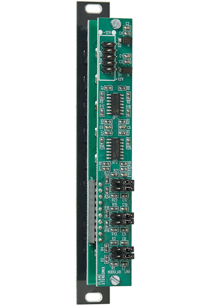 As all left and right channels are fully separated, the module can alternatively be used as a dual 3-to-1 mono mixer.