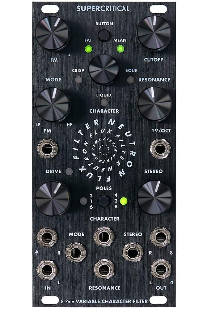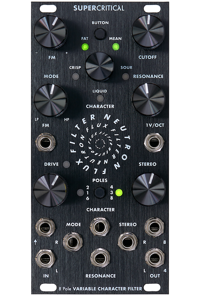 - Character: This control blends between five vintage influenced classic filter characters: Fat, Crisp, Liquid, Sour and Mean. Coming later in a firmware update, the Neutron Flux will also have two user banks for more specialized filter characters which can be replaced via audio update.