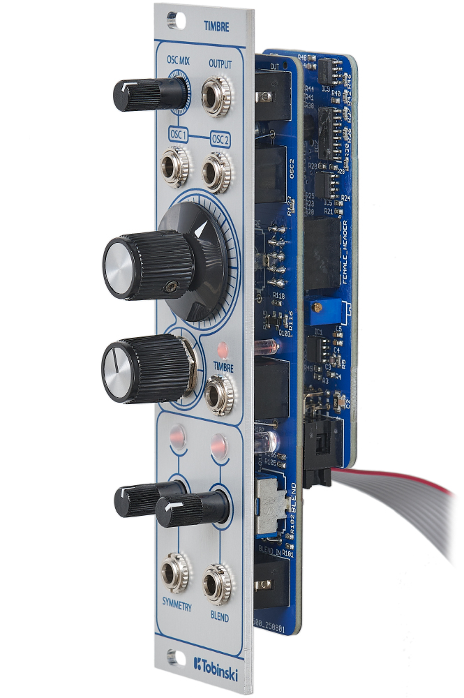 The wave folder adds extra harmonics to input signals that have low harmonic content to create rich and interesting timbres. Typical input sources to use would be Sine and Triangle waves but you are welcome to try other sources as well! The Tobinski Timbre adds an extra input to the Buchla design to allow 2 oscillators to drive the wave-folder simultaneously – this dramatically increases the range of possible tones that can be generated and allows the folder to go wild!