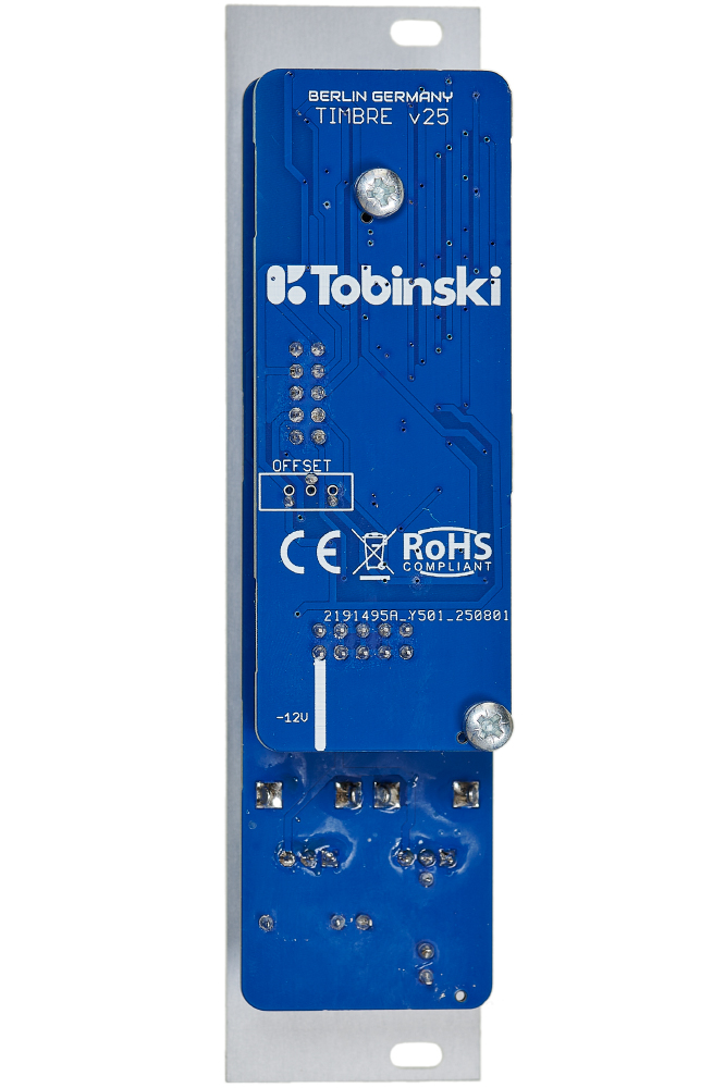 - Timbre CV - Bipolar (attenuator) controls the Timbre CV input
