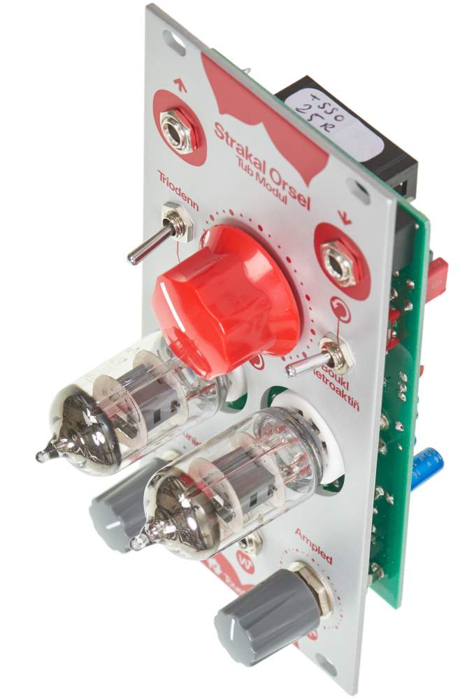 Without an input signal, but with wide open feedback, the Strakal Orsel can be used as a beefy effect oscillator. Using its CV input, the pitch can be varied. There is no accurate pitch tracking according to the standard 1 v / octave, though. If you now deactivate the feedback and dial in the right volume and distortion settings, you can enjoy the Orsel’s noise floor in its purest form. In other words, the module will emit charming tube noise. Operation as a crude VCA is possible as well.