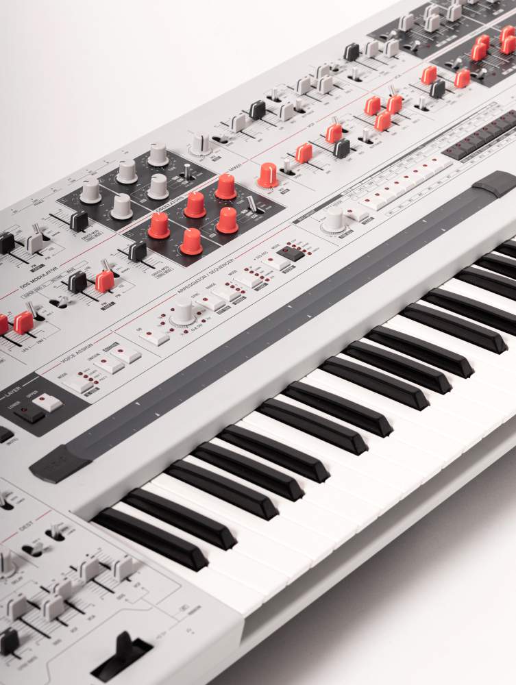 The binaural synthesis feature provides users with 20 voices divided into 10 "supervoices," resulting in a warm and analog tone as each channel is assigned a distinct synthesizer voice. The combination of a 61-note polyphonic aftertouch keybed and an added ribbon strip allows the creation of exceptionally expressive and captivating sounds.