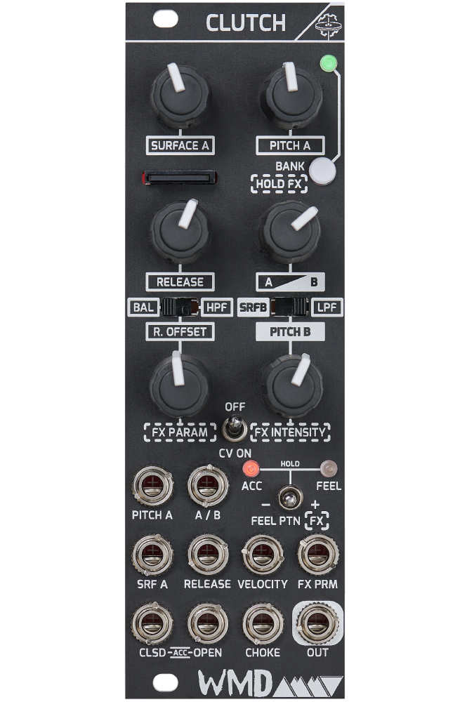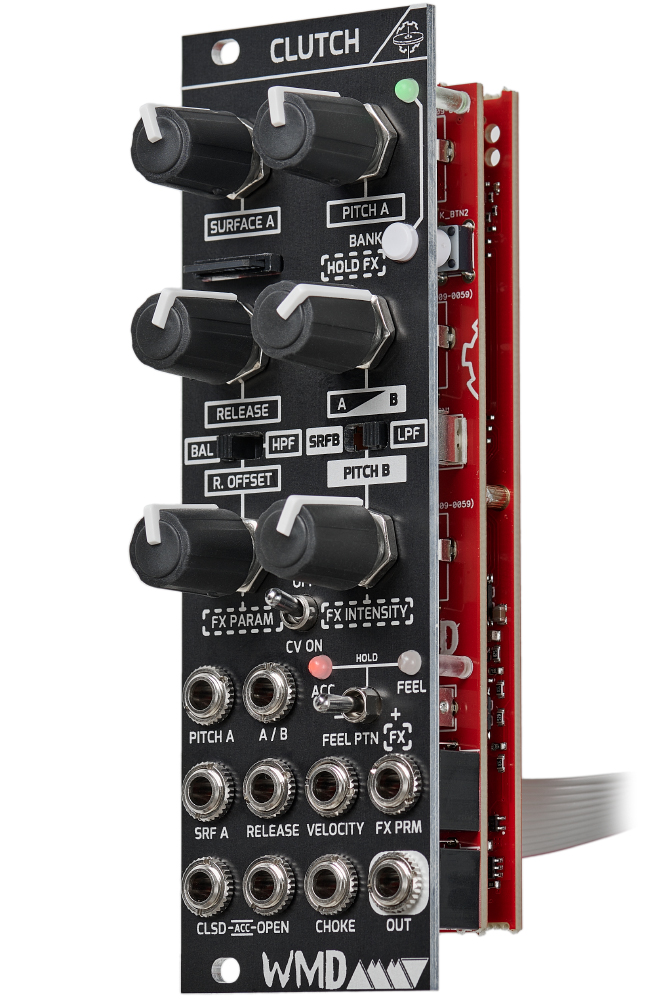 The Clutch module is a dual sample player designed specifically for creating dynamic hi-hat sounds via its intuitive interface. You can save up to 8x16 banks of hats from a memory card!